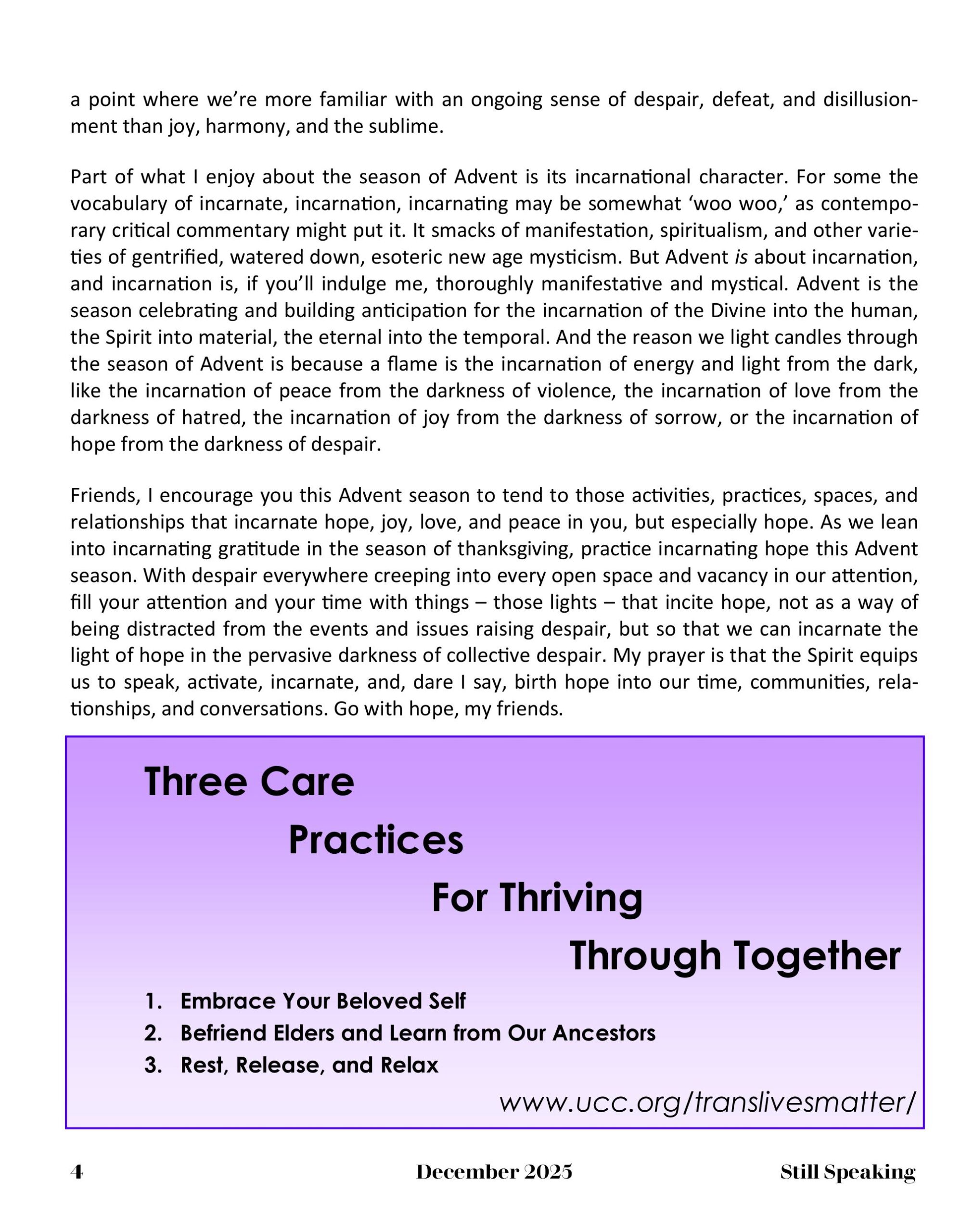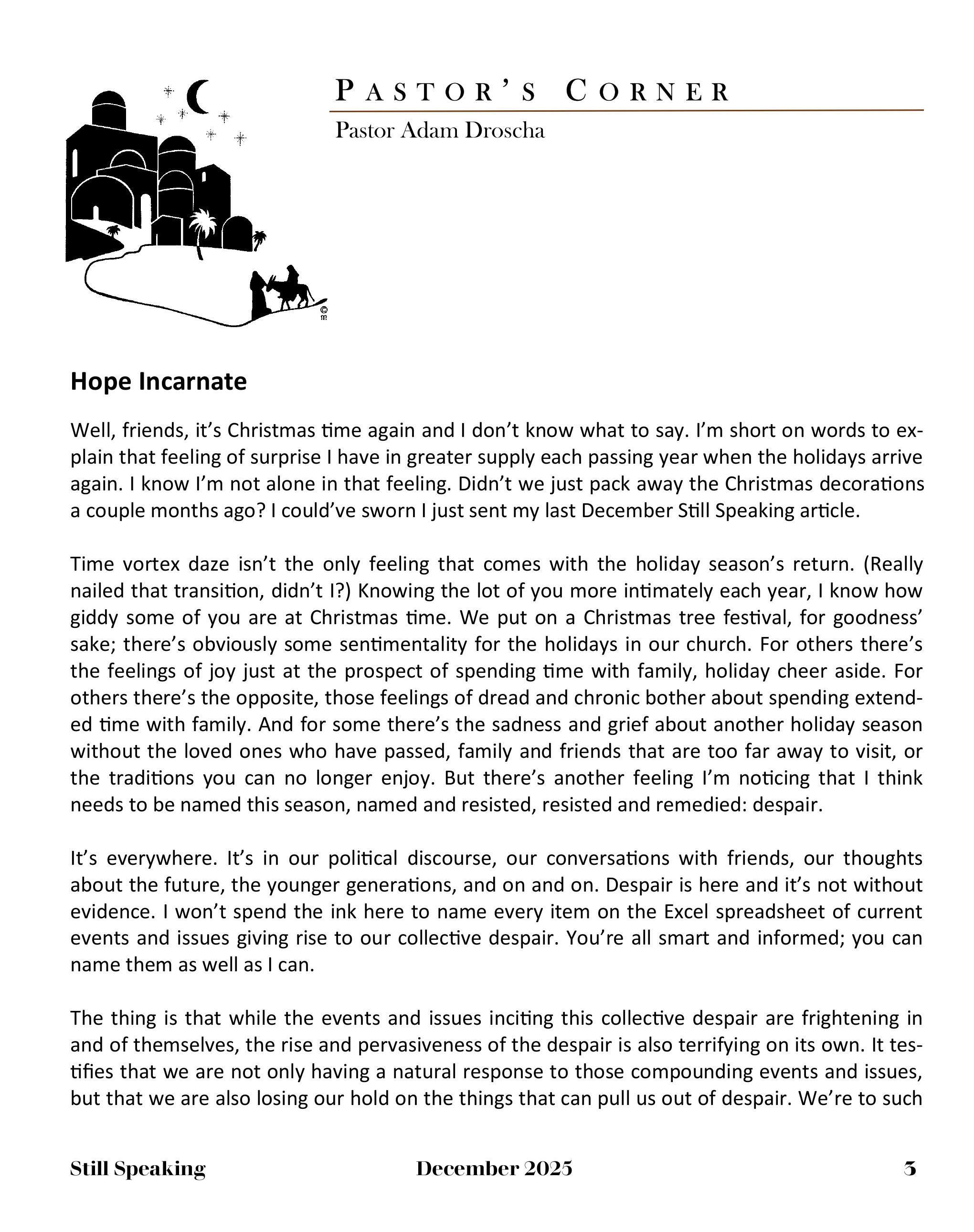 Still Speaking, December 2025