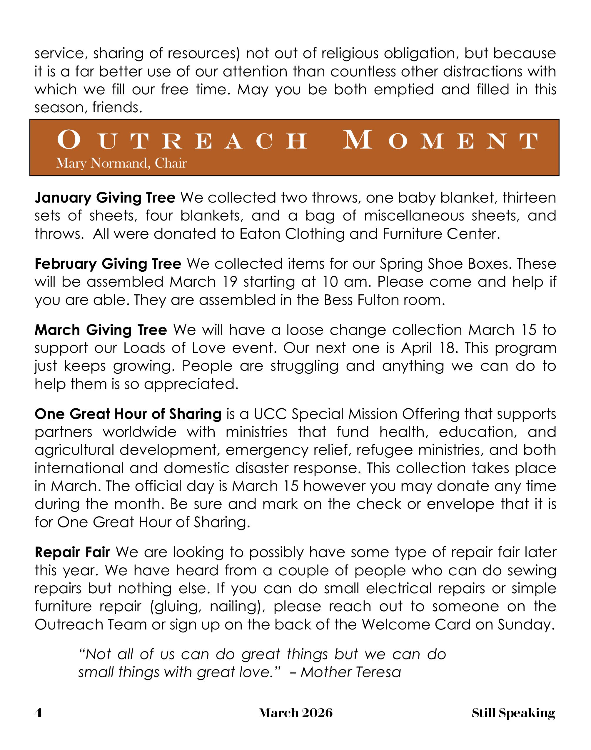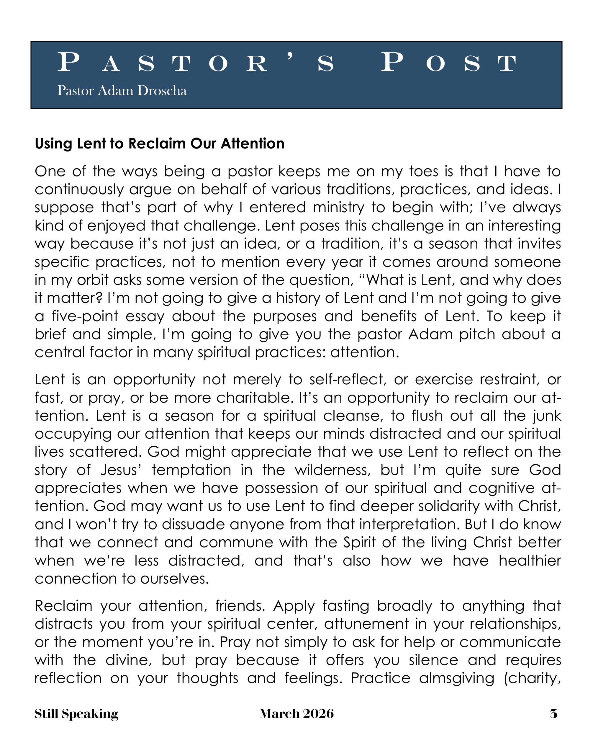 Still Speaking, March 2026